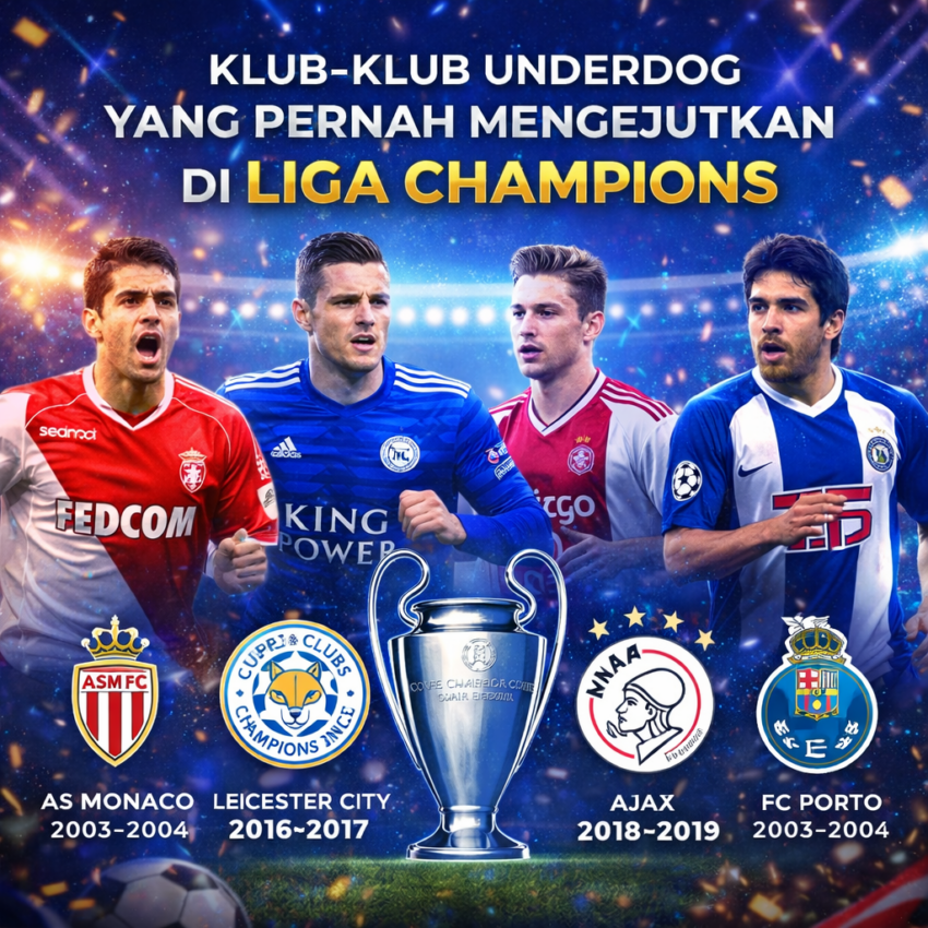 Liga Champions UEFA dikenal sebagai kompetisi sepak bola paling bergengsi di Eropa. Turnamen ini biasanya didominasi oleh klub-klub besar seperti Real Madrid, Barcelona, Bayern Munich, dan AC Milan. Namun dalam sejarah Liga Champions, beberapa klub yang tidak diunggulkan atau disebut sebagai underdog pernah menciptakan kejutan besar.
